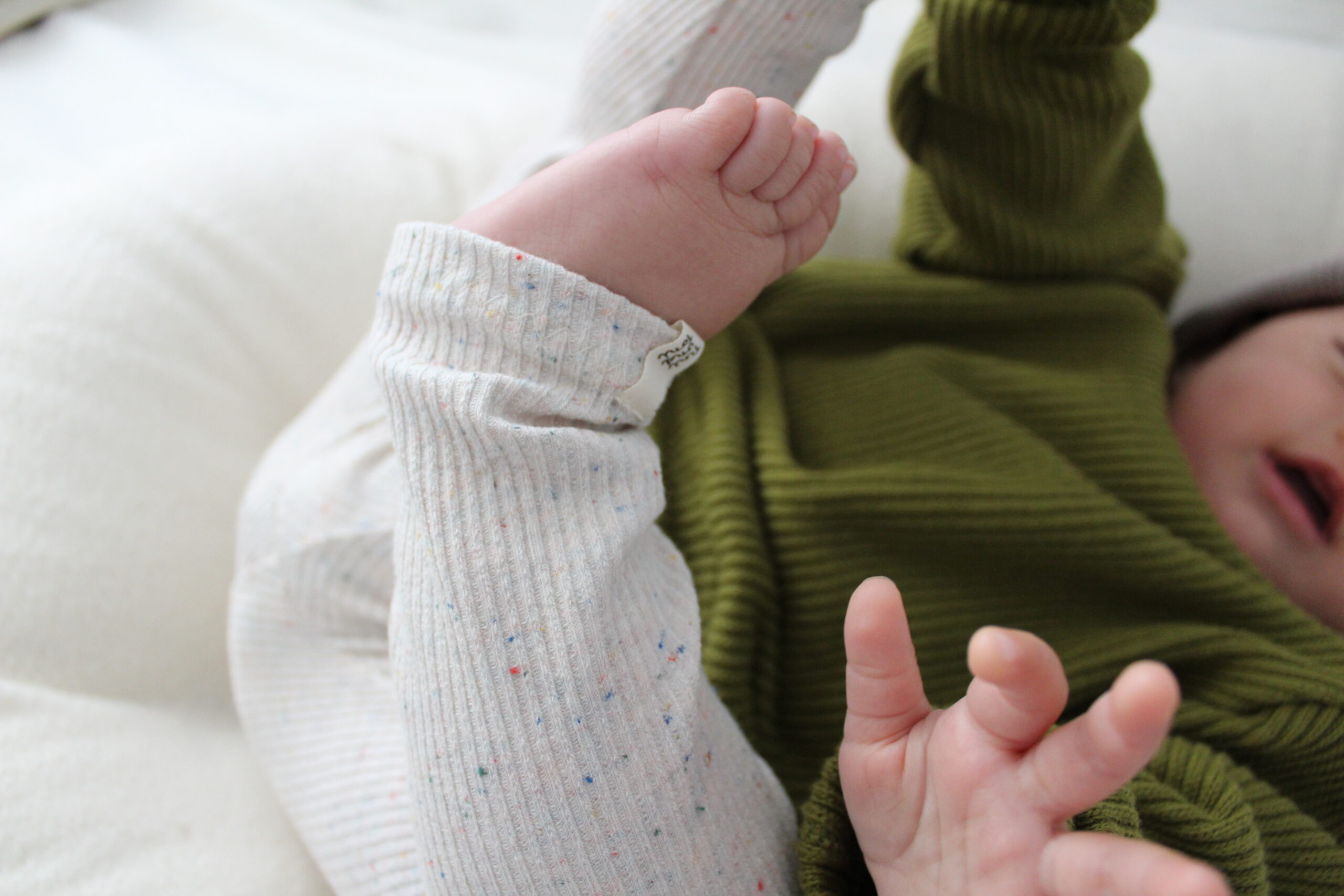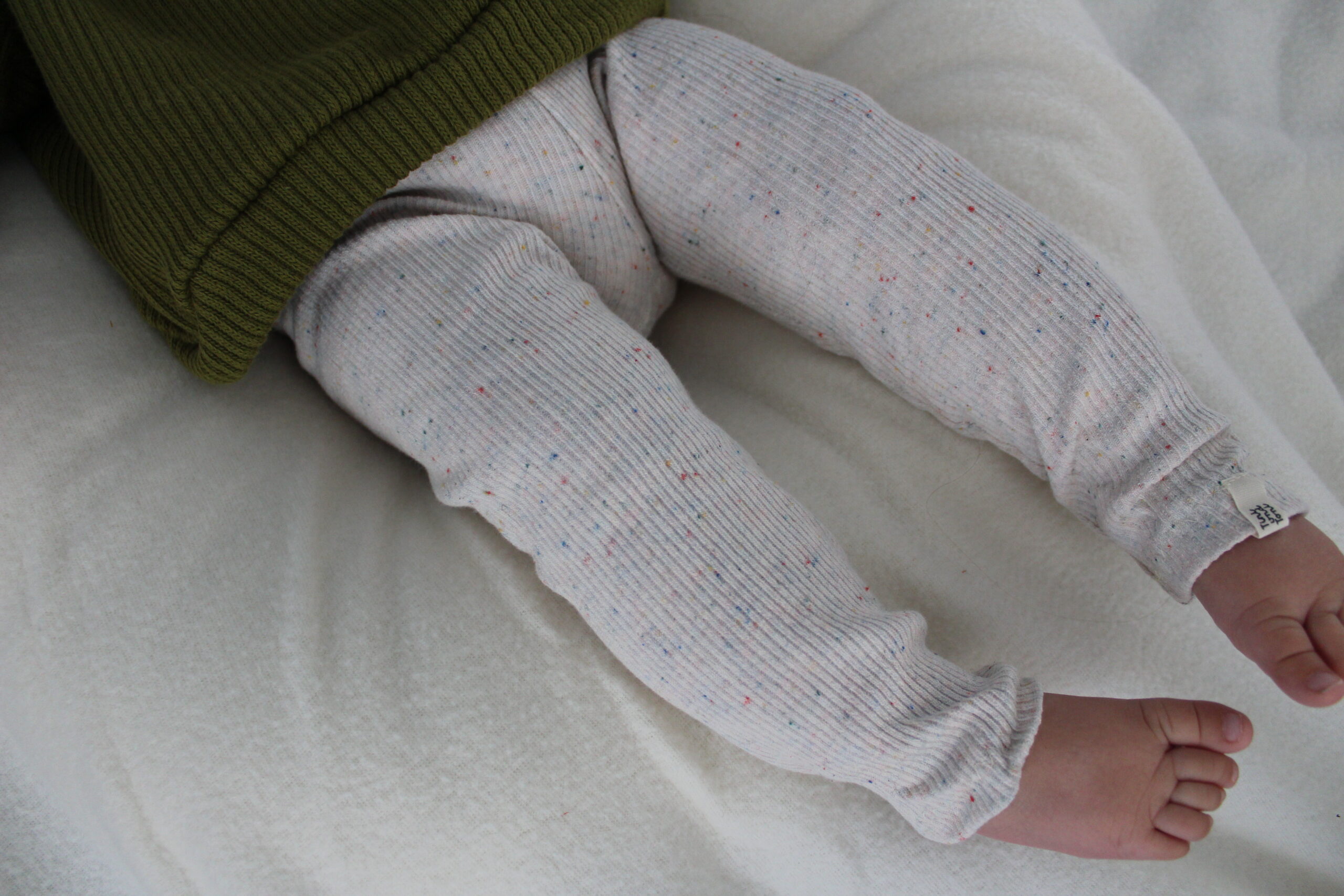 Bequeme, elastische Leggins in der Farbe Ecru, meliert mit Konfetti-Fäden. Der Stoff ist butterweich und ist durch seine hohe Elastizität super bequem.